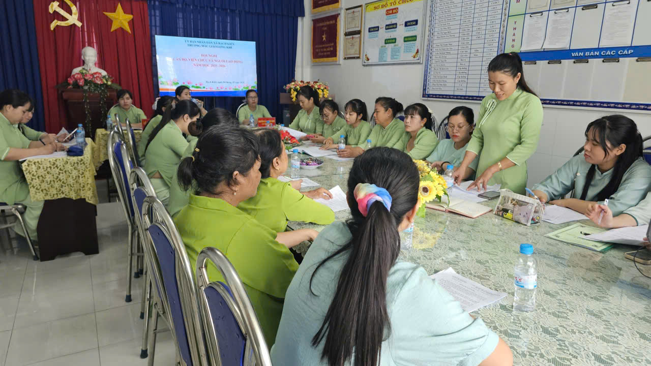 Hội nghị cũng đã tiến hành thông qua Nghị quyết năm học 2025 – 2026 với các chỉ tiêu cụ thể về chuyên môn, thi đua, đổi mới phương pháp giáo dục, công tác phối hợp với phụ huynh và chăm lo đời sống cán bộ, nhân viên. Tập thể sư phạm nhà trường thể hiện quyết tâm đoàn kết, trách nhiệm và sáng tạo để hoàn thành thắng lợi nhiệm vụ năm học mới.