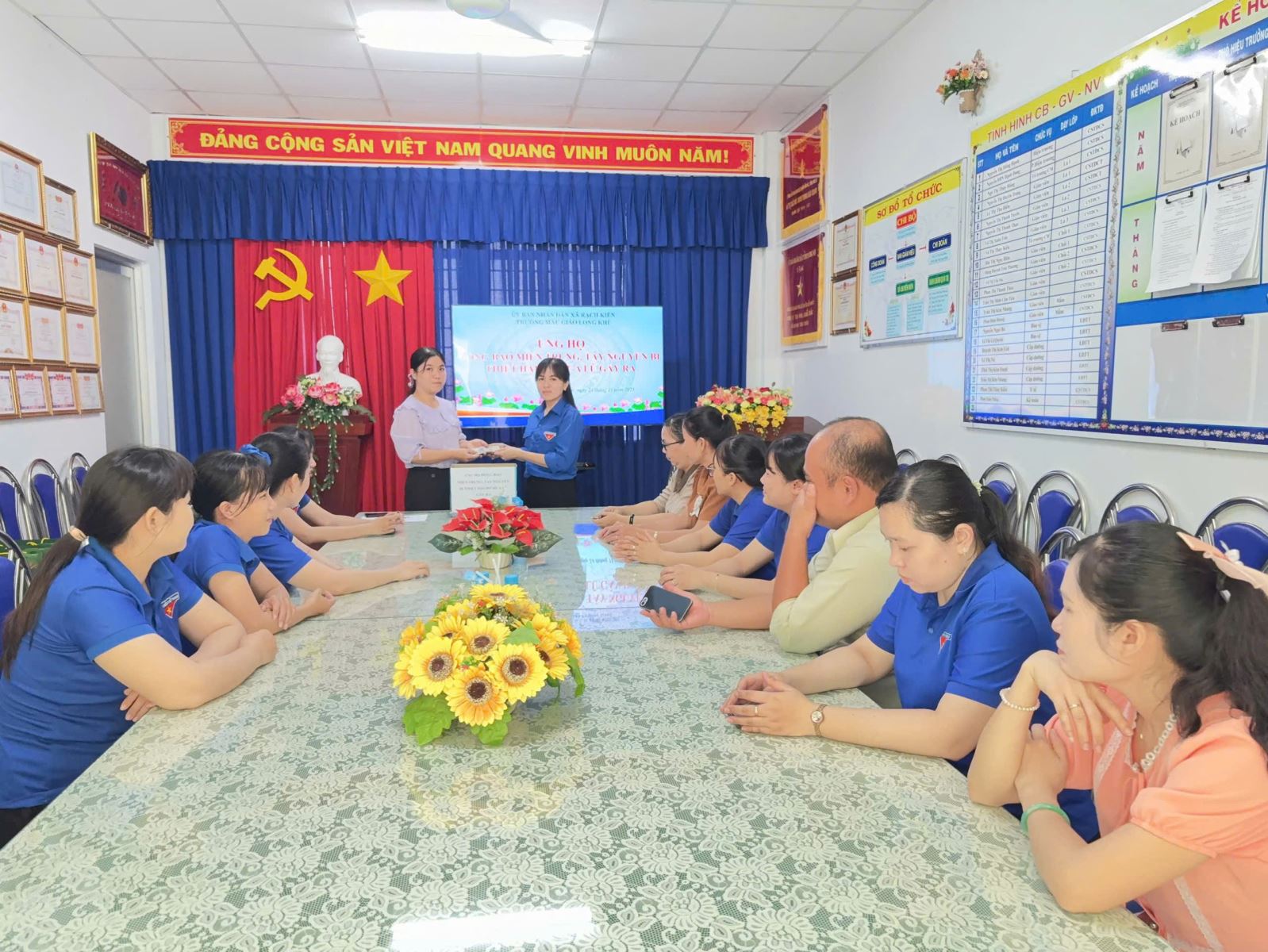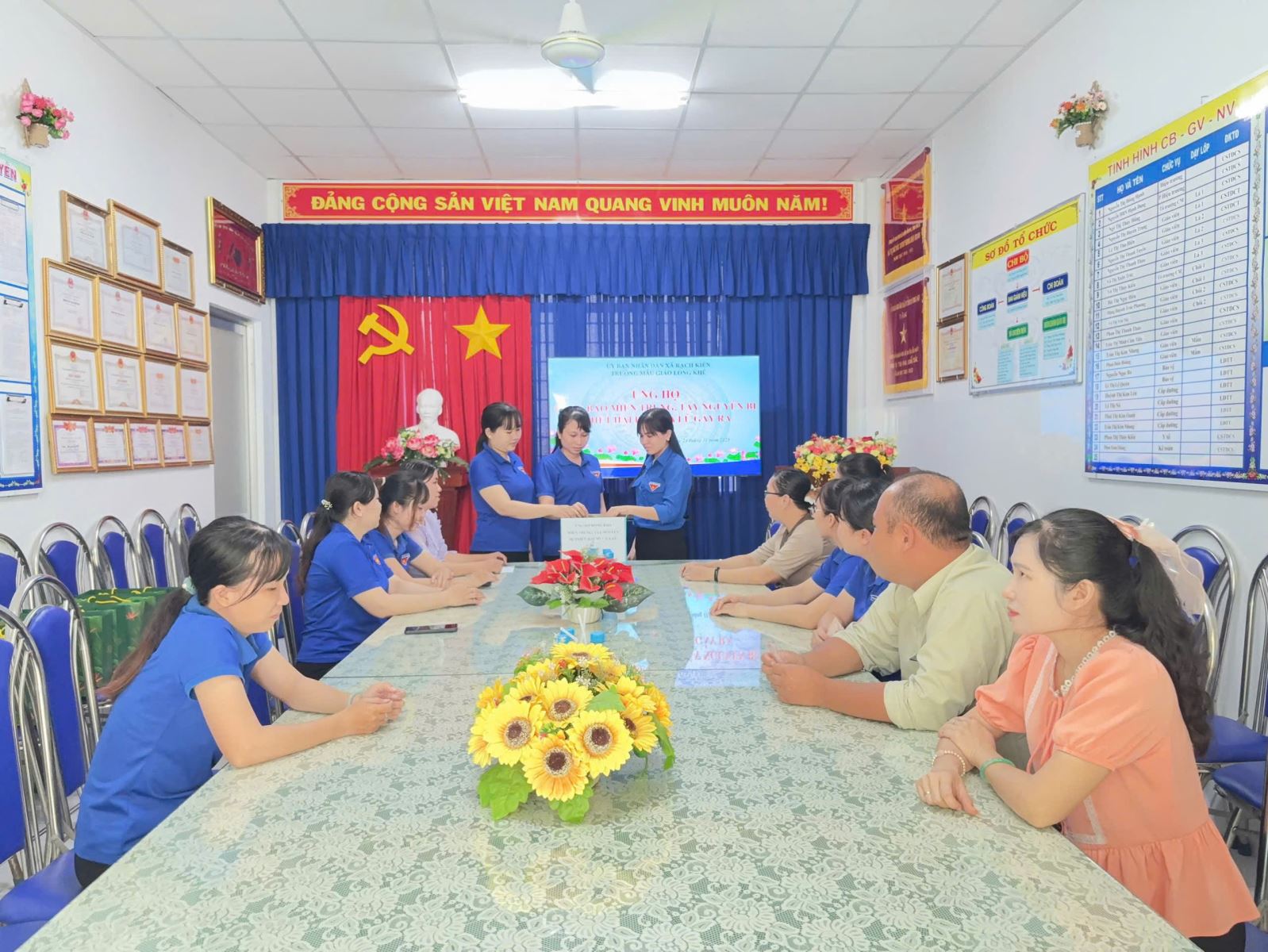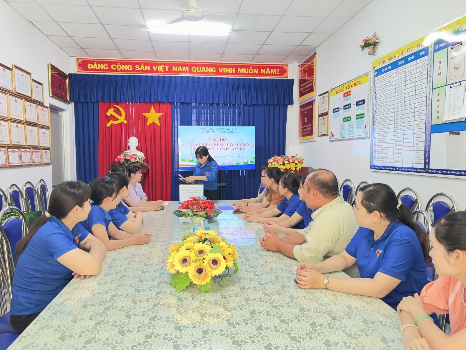 Thực hiện Công văn số 228-CV/ĐU ngày 24/11/2025 của Đảng uỷ xã Rạch Kiến về việc ủng hộ đồng bào miền Trung, Tây Nguyên bị thiệt hại do mưa lũ gây ra và hưởng ứng lời kêu gọi của Ủy ban Mặt trận Tổ quốc Việt Nam xã Rạch Kiến về việc ủng hộ đồng bào miền Trung, Tây Nguyên bị thiệt hại do mưa lũ gây ra. Tập thể cán bộ, giáo viên và nhân viên nhà trường đã nhiệt tình tham gia đóng góp, chung tay chia sẻ nhằm động viên tinh thần, giúp bà con vùng lũ giảm bớt khó khăn, sớm khắc phục hậu quả, ổn định cuộc sống và khôi phục sản xuất với tổng số tiền là 4.000.000 đồng, đã được nhà trường chuyển đến Ủy ban Mặt trận Tổ quốc Việt Nam xã để gửi tới đồng bào vùng bị thiên tai.