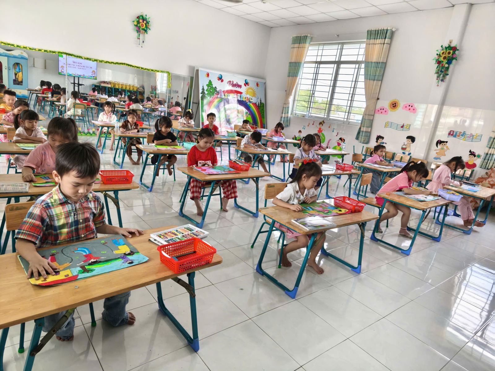 Cùng ngắm nhìn những khoảnh khắc tập trung, say mê và đầy sáng tạo của trẻ khi tham gia hội thi “Bé vẽ tranh” tại trường Mẫu giáo Long Khê.